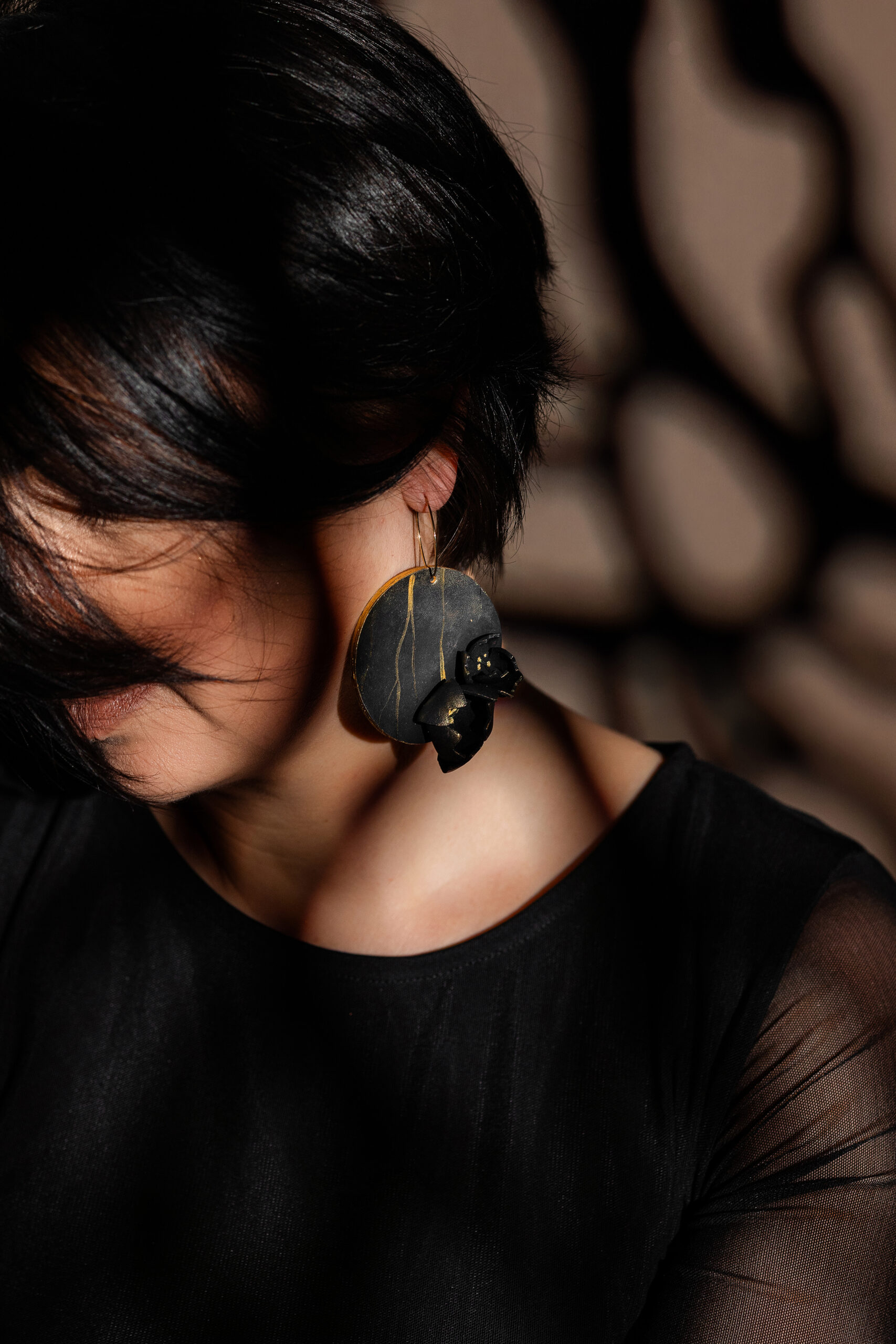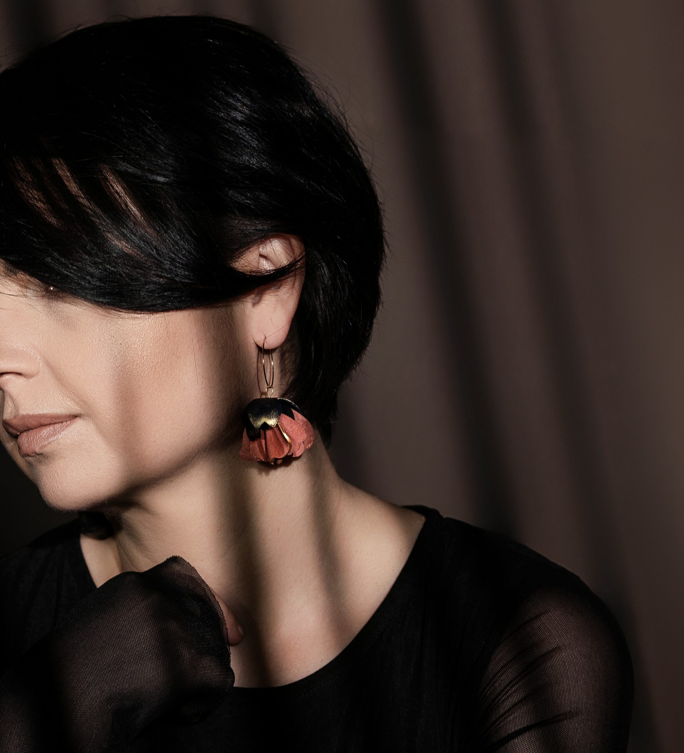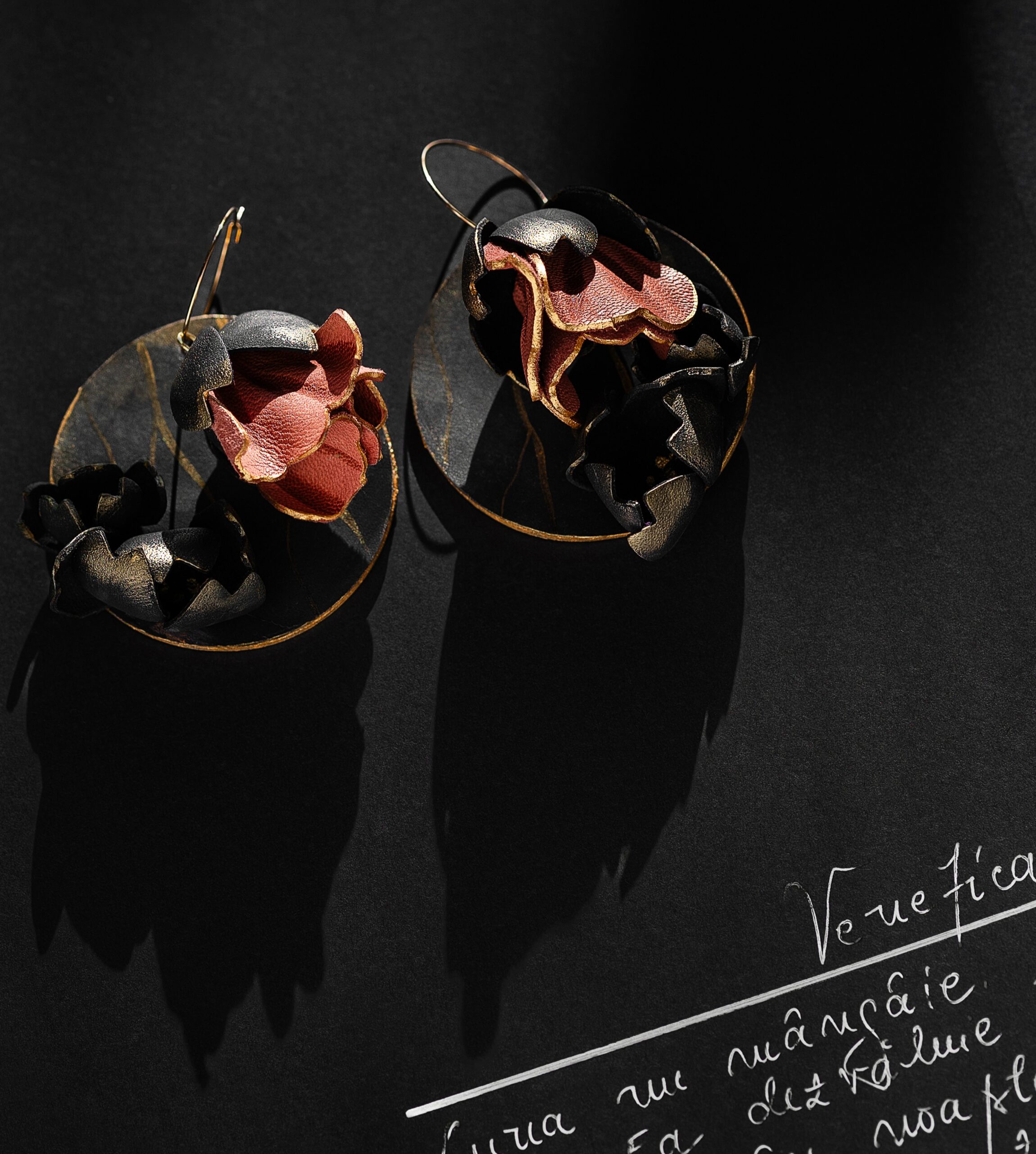 Realizati din piele naturală modelata și pictată manual pe tortițe de otel inoxidabil auriu. Este un concept 2 in 1, adica sunt alcatuiti din doua elemente diferite care pot fi purtate impreuna sau separat.