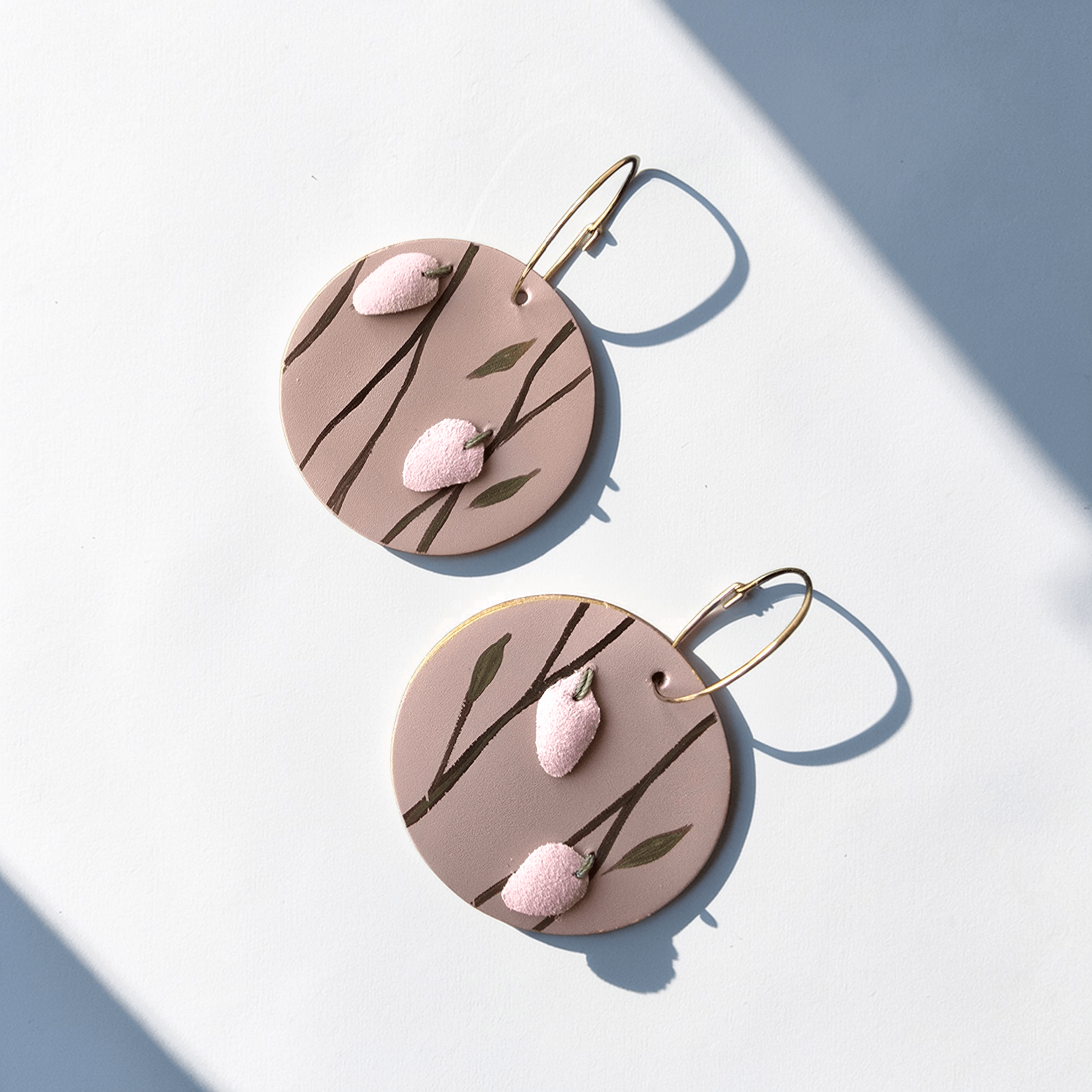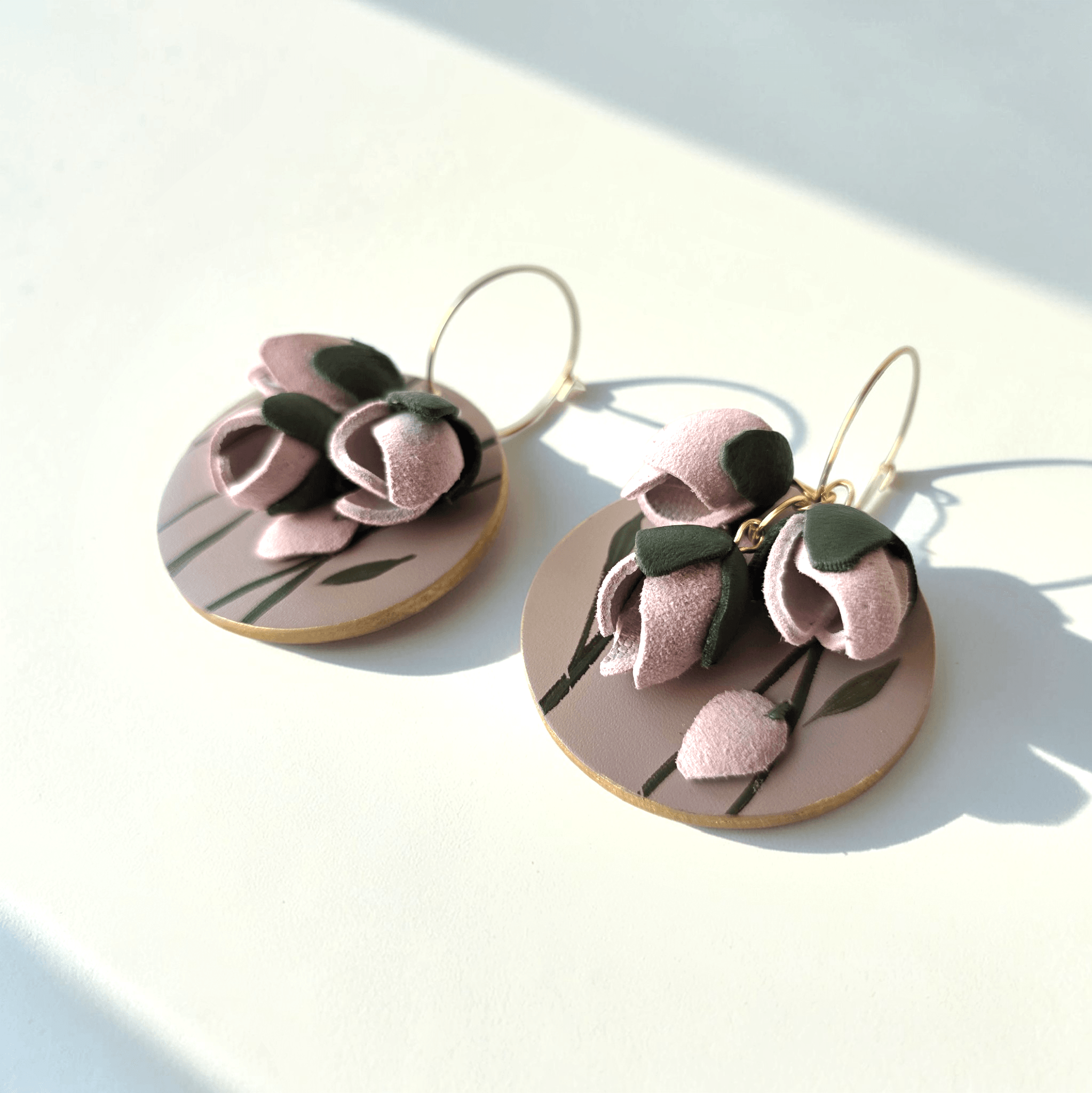 Un nou concept de cercei alcatuit din mai multe elemente care pot fi purtate impreuna sau separat. Mai intai avem o baza de crengute imbobocite , apoi iau nastere trei flori fragede , inca nedeschise.